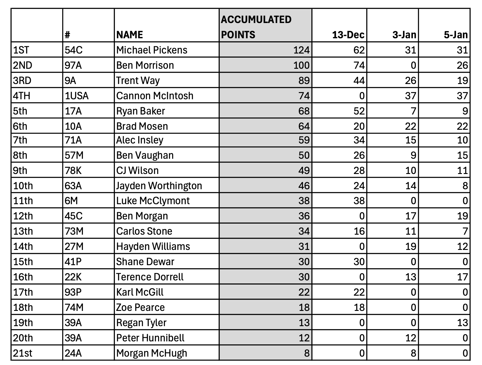 Season Points Standing
