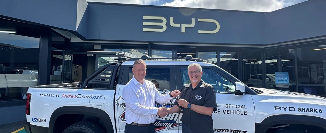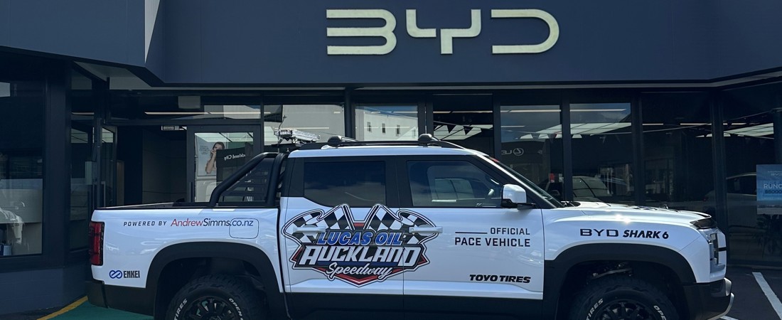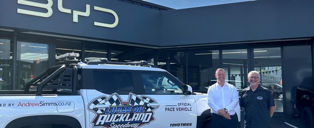 Lucas Oil Auckland Speedway is thrilled to announce that Andrew Simms has come on board as the official sponsor of this year’s pace vehicle, bringing innovation and style to the track with the BYD Shark 6.